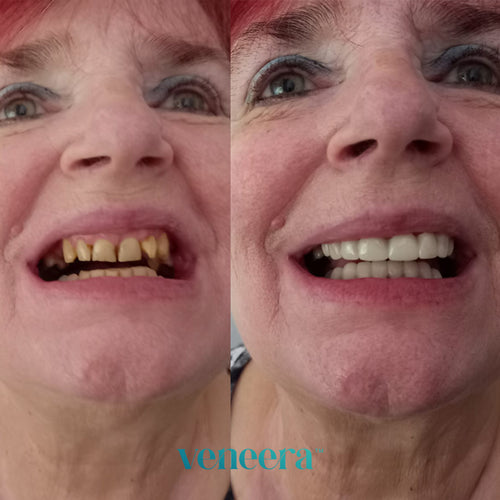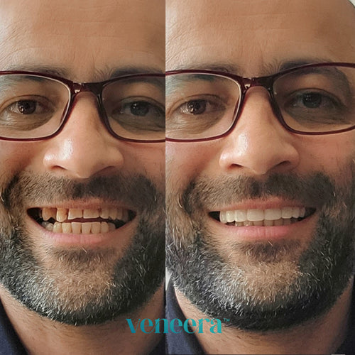 Do you suffer from missing teeth, gaps in your teeth and/or crooked teeth? Or are you simply dissatisfied with the color of your teeth? With Veneera™ this is now a thing of the past. The flexible and custom-made Teeth-Veneer corrects imperfections in your natural teeth and ensures a flawless smile - whenever you want.