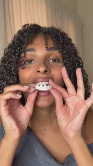 The Teeth-Veneer is manufactured with extreme precision so that it fits your own teeth perfectly. It is attached to your teeth with minimal adhesive and is easy to apply and remove, making the dental veneer extremely durable and able to withstand almost all everyday situations.
