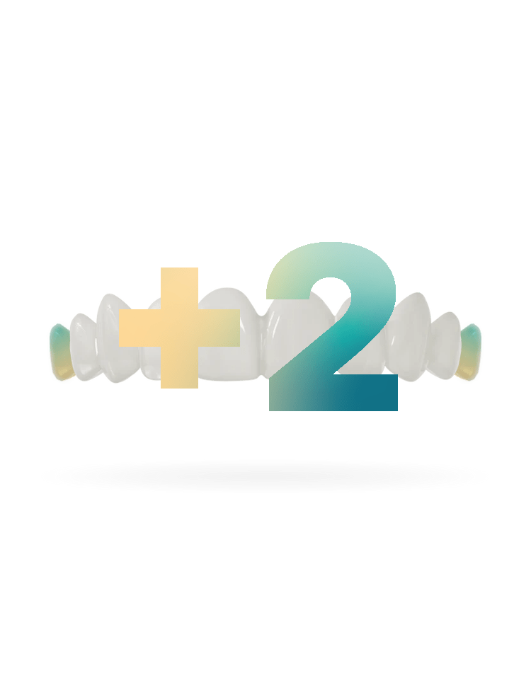 The basic version of the Veneera™ Teeth-Veneer covers 8 teeth. For most people, this corresponds to the visible area of a natural smile. If you have a wider smile, you can extend your Teeth-Veneer to 10 teeth. Two additional teeth cost $ 30 per veneer.